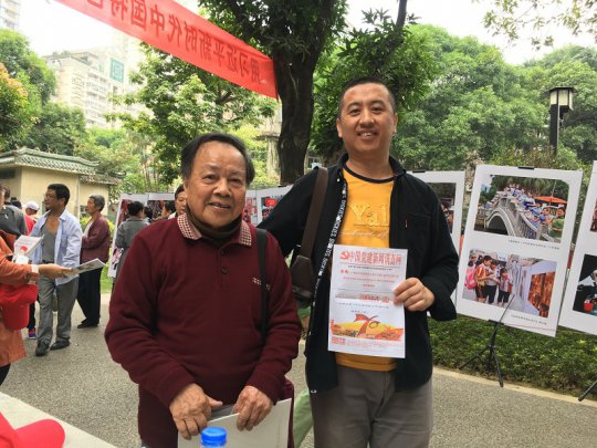 参与首都阅兵式的老同志与孙键老师在现场交流