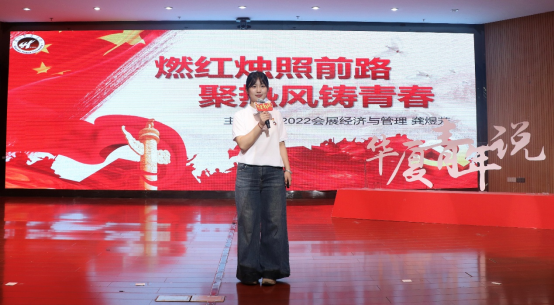 商务与管理学院龚煜芳同学则以《燃红烛照前路,聚热风铸青春》为主题,通过讲述其祖父作为一名普通教师默默奉献、点燃希望的感人故事,传递出朴素而坚韧的教育精神,深深打动了在场师生。