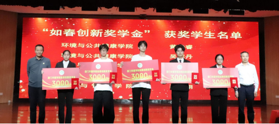 随后,活动进入“如春创新奖学金”介绍与颁奖环节。该奖学金于2019年由时任厦门华厦学院理事长王小如教授发起并捐资设立,旨在表彰科创突出的学生、激励更多学子投身科技实践。校科研产业处副处长杨阳副教授宣读第六届获奖名单,校党委书记徐志怀、厦门市应用技术研究院院长庄峙厦为获奖同学颁奖。近年来,我校学生累计254人次发表论文134篇,320名学生申请的188件专利及软著获得授权,充分展现了华厦学子在科技创新道路上的不懈追求。
