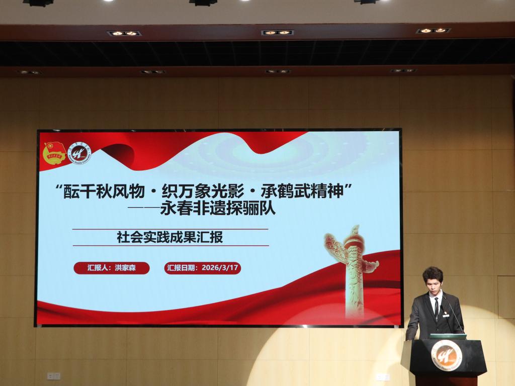 为全面总结2026年寒假社会实践成果、深入实施“时代新人铸魂工程”,展现华厦学子服务社会的责任担当,3月17日16:10,厦门华厦学院在明德厅2召开寒假社会实践成果汇报会。通识教育中心卢靖老师、马克思主义学院张学翎老师、教务处林宇虹老师担任评委,校团委书记范莉梅、校团委全体老师、二级学院团委书记及副书记、各实践队指导老师、队员及及青马学员共同参会。