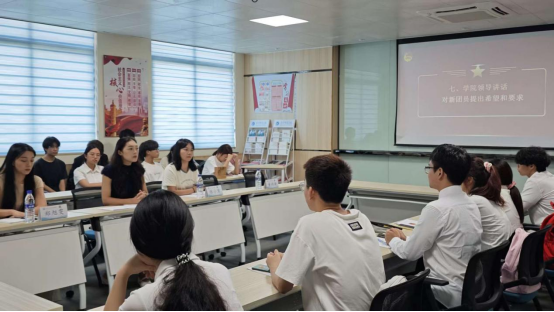 仪式期间,王亚凡老师结合习近平总书记关于青年工作的重要论述,向2025年9月发展团员提出希望与要求。他们强调,入队、入团、入党是青年追求政治进步的 “人生三部曲”,希望2025年9月发展团员珍惜许下的誓言,珍惜团员身份,主动接受政治训练、加强政治锻造,以成长为合格共产党员为目标,在中国式现代化建设新征程中挺膺担当,成为社会主义事业的合格建设者与可靠接班人。随后,练小慧老师也对2025年9月发展团员们提出了具体的要求。她就入党申请书的提交规范进行了详细说明,提醒大家要认真对待,严格按照要求准备材料,为未来的政治进步打好坚实基础。