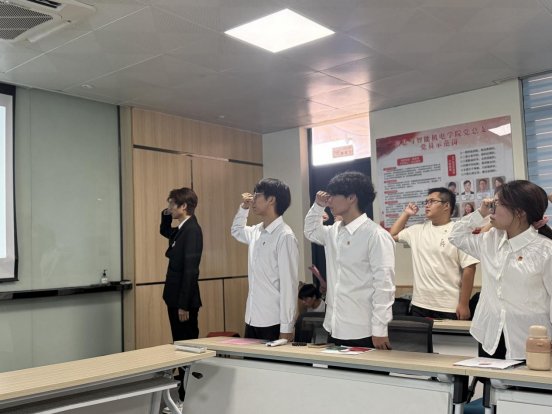 为引导青年学生坚定理想信念、追求政治进步,传承共青团“坚定不移跟党走,为党和人民奋斗” 的初心使命,2025年9月29日,厦门华厦学院信息与智能机电学院2025年9月发展团员入团仪式在大音407教室隆重举行。团委书记王亚凡、学生第二党支部书记练小慧、辅导员郑旭雯出席仪式,2025年9月发展团员及部分老团员代表共同参与,仪式由张湘君同学主持。