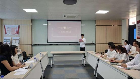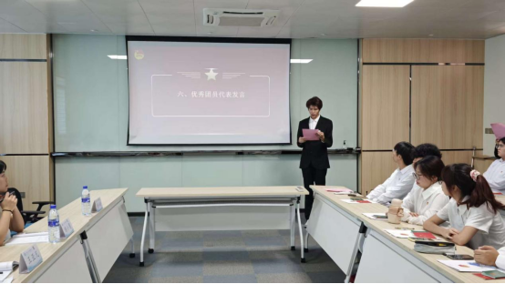 优秀团员代表洪家森同学随后发言,以老团员视角分享在团组织中的成长感悟。他提出“做信仰坚定的接力者、勤学实践的奋斗者、勇立潮头的担当者” 三点倡议,鼓励新老团员携手共进,将 “小我” 融入国家发展 “大我”,以实际行动为团旗增辉,他的话语为2025年9月发展团员指明了前进方向。