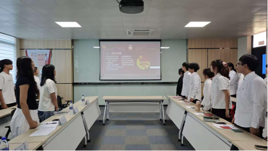 仪式在庄严的中华人民共和国国歌声中拉开帷幕。主持人张湘君在开场致辞中回顾百年历史:从“觉醒年代” 爱国青年掀起“五四运动”,到 1922 年中国共青团在党的领导下宣告成立,百余年来共青团始终紧跟党的步伐,凝聚青年力量助力民族复兴。她表示,此次的入团仪式,既是对2025年9月发展团员政治追求的肯定,更是对青年学子践行青春誓言、担当时代使命的号召,希望在场每一位青年都能在这个充满意义的空间里,铭记入团初心,开启人生新征程。