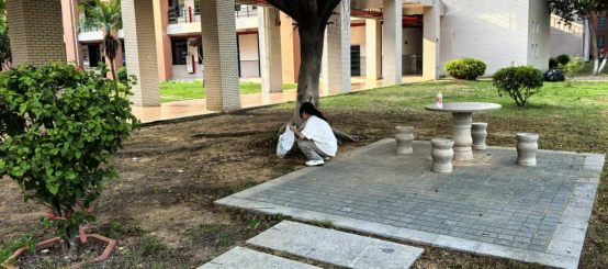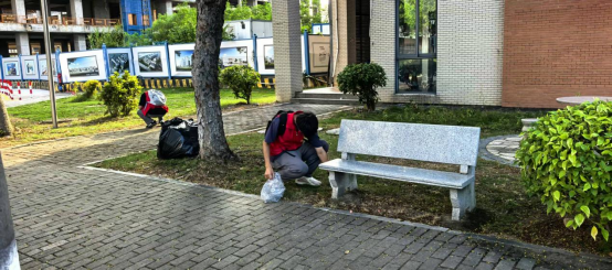 在整个清洁过程中,志愿者们始终保持着认真负责的态度,细致入微地对待每一片区域。他们弯腰捡起散落在各个角落的纸屑、塑料袋、枯枝落叶等杂物,甚至连隐藏在草丛深处的细小垃圾也不放过,确保不遗漏任何一个卫生死角。经过近一个小时的辛勤努力和默契配合,三大草坪区域内的垃圾被彻底清除,草坪瞬间焕然一新,呈现出一片整洁清新的景象。