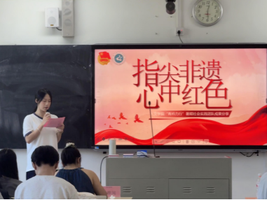 “青衿力行”暑期社会实践队,学生志愿者和社区居民交流学习漆扇制作技巧,共同制作“红色文化”竹编和剪纸作品,聆听背后的历史故事与文化寓意,在红色基因中解码爱党爱国情怀,在爱心传递中体悟“力行而后知之真”的真谛。