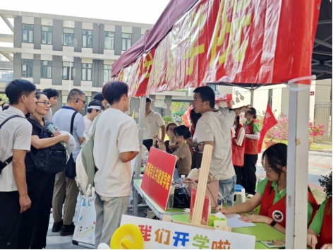 党团先锋引领,发挥模范作用。迎新当日,厦门华厦学院环境与公共健康学院党总支在迎新大本营特设“党员先锋岗”,充分发挥党组织战斗堡垒作用与党员先锋模范作用。佩戴党徽的党员教师与学生党员主动亮明身份、靠前服务,围绕新生报到流程指引、校园生活咨询、行李搬运帮扶等核心需求,为初入校园的新生及家长提供贴心服务。先锋岗上的党员们以热情的态度、耐心的解答和高效的行动,将党组织的关怀落到实处,不仅高效助力迎新工作有序开展,更以实际行动为新生上了“入学第一课”,用责任与担当为校园增添了一抹亮眼的“红色”风景线 。