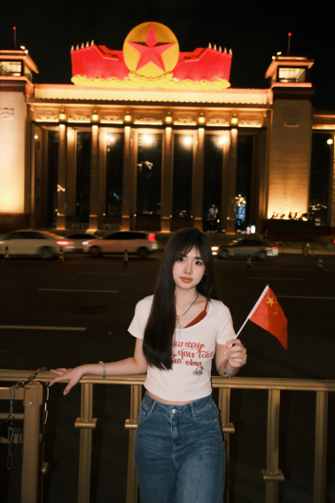 在这灯火璀璨的时刻,站在南昌八一广场前,手中的国旗仿佛也被这份庄严与热烈点燃。愿祖国永远繁荣昌盛,而我也会带着这份赤诚,在往后的日子里努力发光,不负这片深爱我的土地!