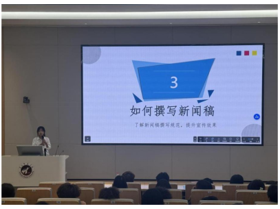 最后,团委办公室主任方颖细致拆解了新闻稿撰写要点,着重指出了标题拟定、要点撰写、正文结构等格式规范,强调新闻稿在宣传传播中的关键作用,鼓励大家做到内容真实、表达清晰、传播有力。
