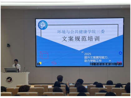 为全面提升学生干部的文案撰写技能,进一步提高文稿质量,保证各项相关工作的高效有序推进,2025年11月9日18:30,环境与公共健康学院于在至善厅2顺利举办文案培训会。