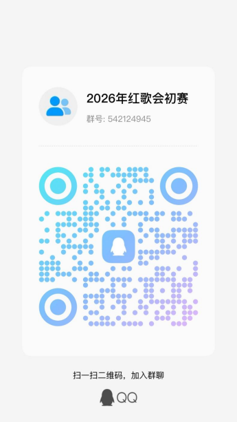(1) 活动要求:各班级文艺委员于4月12日前加入“红歌会”工作群(二维码附后),通过线上抽签方式确定参赛赛道,鼓励同学们积极踊跃策划与曲目相适配的表演,各班级根据综合表现择优推送复赛。